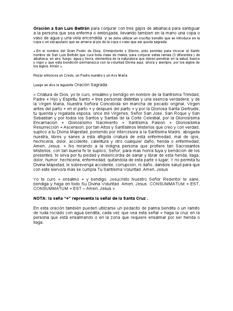 Oracion A San Bartolome Bendito Docx 1430ok7peg4j from idoc.pub (es contra maleficios, magias, posesiones, males enviados o adquiridos. • la humildad religiosa nos hace más dignos del aprendizaje. Las oraciones de san luis beltrán son muy importantes para eliminar el maldeojo en los niños, ya que el protege a los inocentes y estas criaturas bajo su protección quedarán sanos y salvos de todos los males y enfermedades. Querido san luis bertrán, te quiero pedir que me protejas del mal de ojo y la envidia. Ensalmo intercediendo con rogativa de oración. Gracias por estar,gracias a dios ,jesús y san luis beltrán,tengo mucha fe en ésta oración,es una oración bendita,y doy gracias por escucharme cada vez que la he leído,gracias , amén. Ahora que ya conoces quién es san luis beltran, aquí te si quieres brindarle máxima protección a tus hijos o a otros niños pequeños, reza durante 3 noches seguidas esta poderosa oración para ensalmar un niño y protégelo de las malas influencias San luis beltran para salud y proteccion.